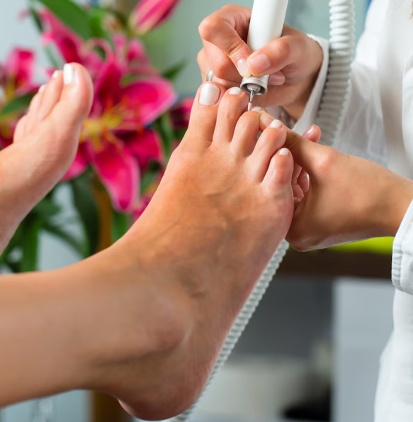 - Техника, используемая при аппаратном педикюре, значительно снижает риск травмирования ног, поскольку фрезы аккуратно удаляют ороговевшую кожу.