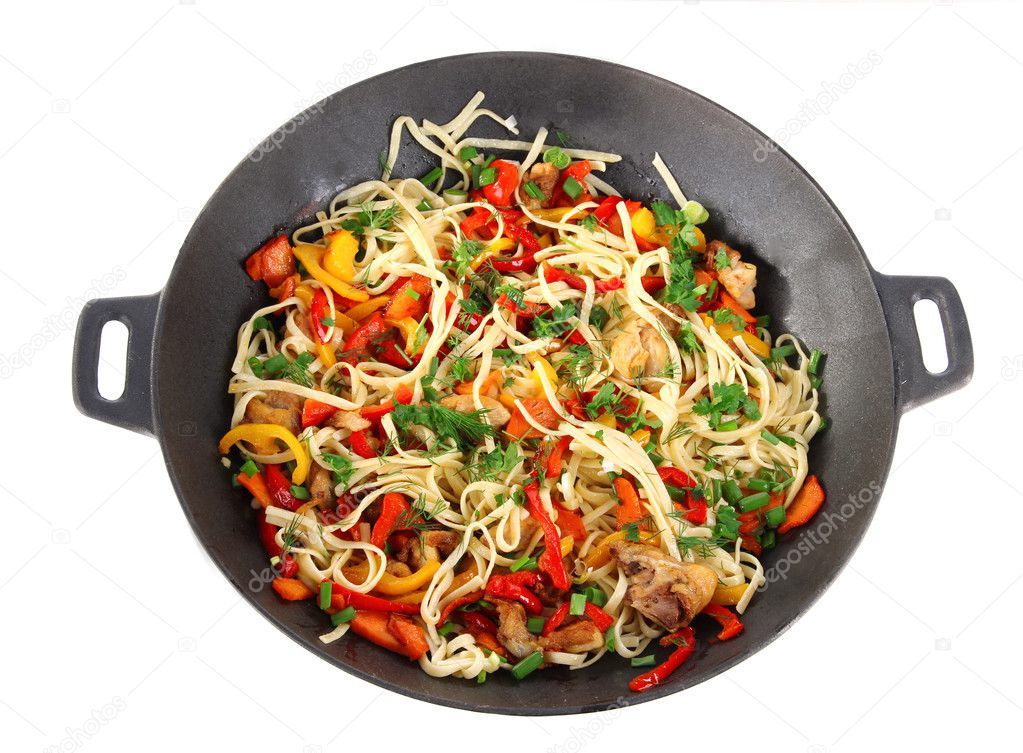 Готовят это блюдо из разных видов муки с использованием яиц или без них. Благодаря особенностям сковороды Вок, готовится она быстро, сохраняя наилучшие свойства ингредиентов. Этого нельзя добиться в другой посуде, поскольку вок имеет форму, позволяющую сконцентрировать жар в центре сосуда, не давая возможности вредным веществам накапливаться в продукте.